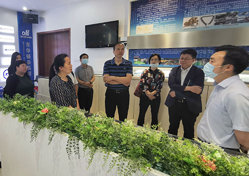 本次区政协科技界别组委员一行主要到东华了解公司技能人才评定、博士后科研工作站及人才引进培养等方面的情况。廖副总等领导陪同政协人员参观了集团新区生产基地、徐长明钳工技能大师工作室、展厅等。管理部副总经理刘冬根向大家介绍了东华在人才引进、工匠培养、博士后科研工作站建设等方面的情况。